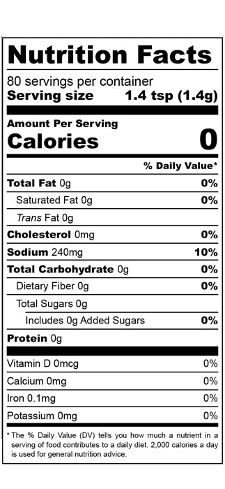 Onion Powder, Rosemary, Lemon Zest, Black Pepper, Cumin, Red Pepper, Oregano, Citric Acid, Paprika, Minced Onion, Basil, Mesquite Smoked Salt, Thyme, Sea Salt, Vinegar Powder.