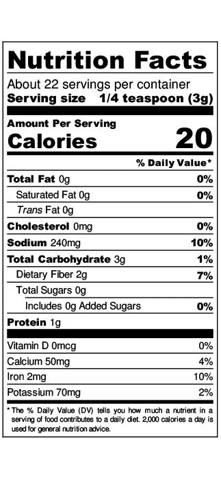 Onion Powder, Rosemary, Lemon Zest, Black Pepper, Cumin, Red Pepper, Oregano, Citric Acid, Paprika, Minced Onion, Basil, Mesquite Smoked Salt, Thyme, Sea Salt, Vinegar Powder.