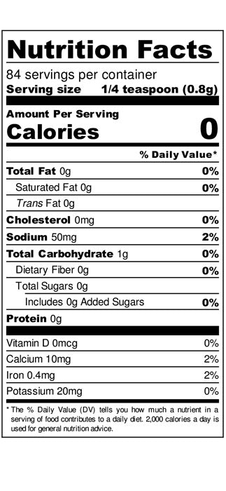 • Greek Oregano, Garlic, Onion, Dill, Marjoram, Black Pepper, Arrowroot Powder, Rosemary, Sea Salt, Basil, Saigon Cinnamon, Nutmeg, Thyme, Lemon Rind, Organic Sucanat.